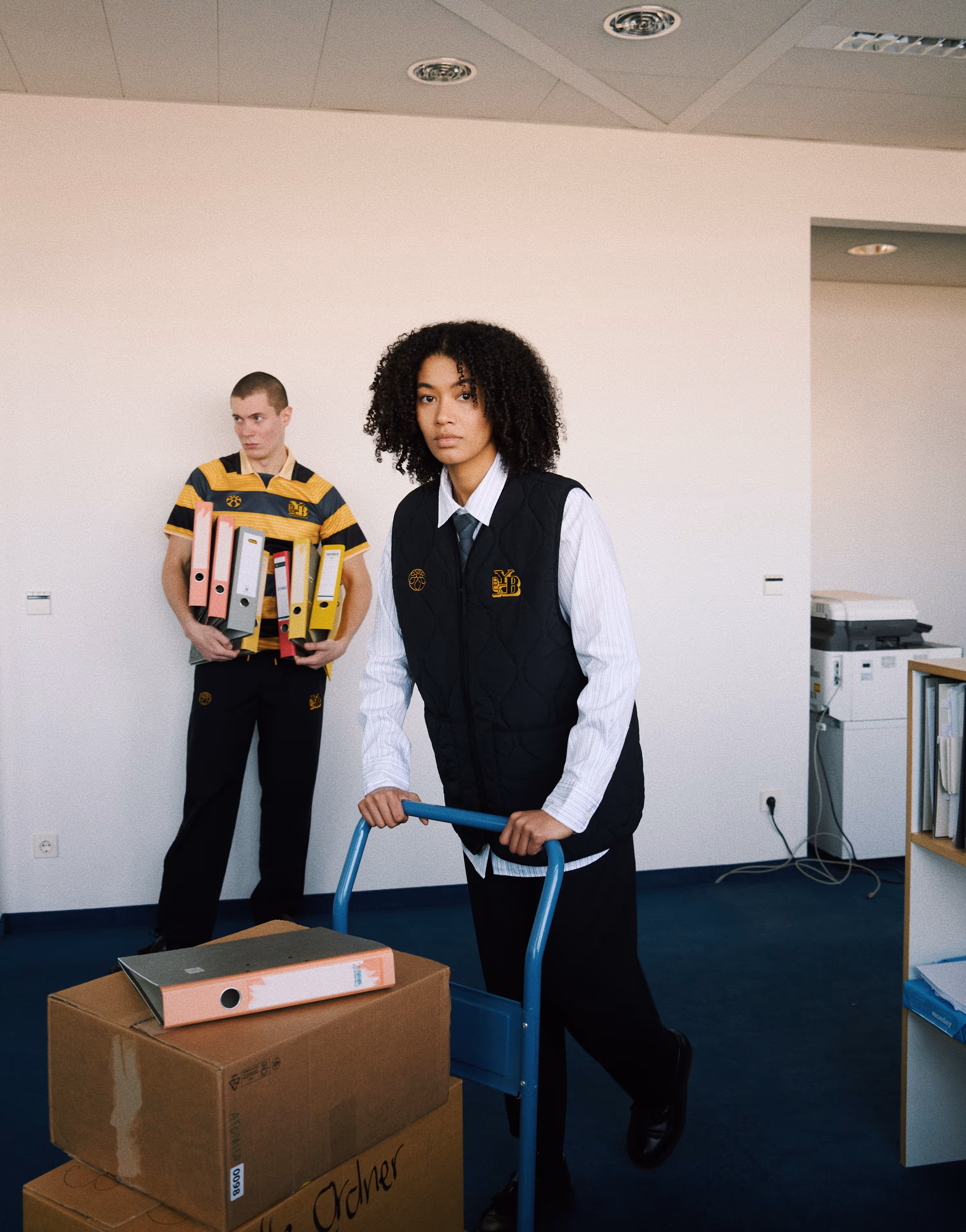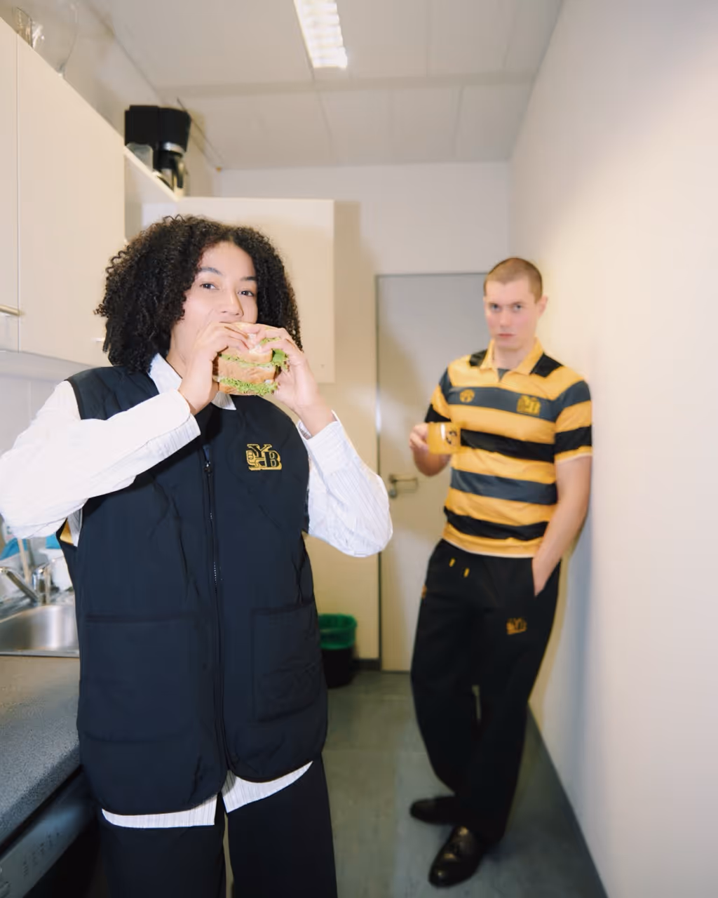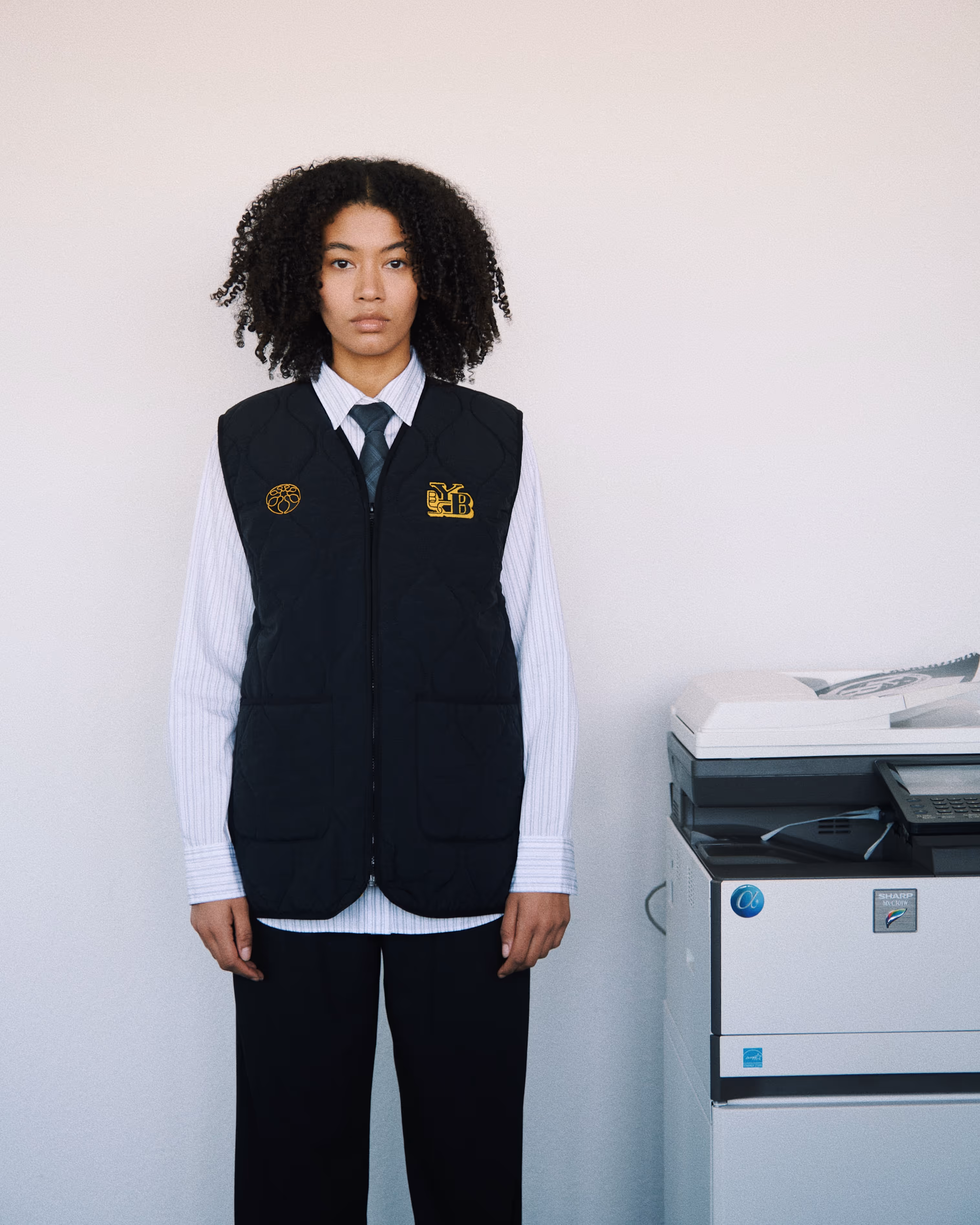 Finally, a quilted vest completes the collection, reimagining classic workwear with a contemporary football twist. Featuring a diamond-stitched design, a bold yellow lining and sleek embroidered branding, it’s an essential layer for the office and the terraces. Whether you're navigating the workday or braving a cold night at the Stadion Wankdorf, this vest has you covered.