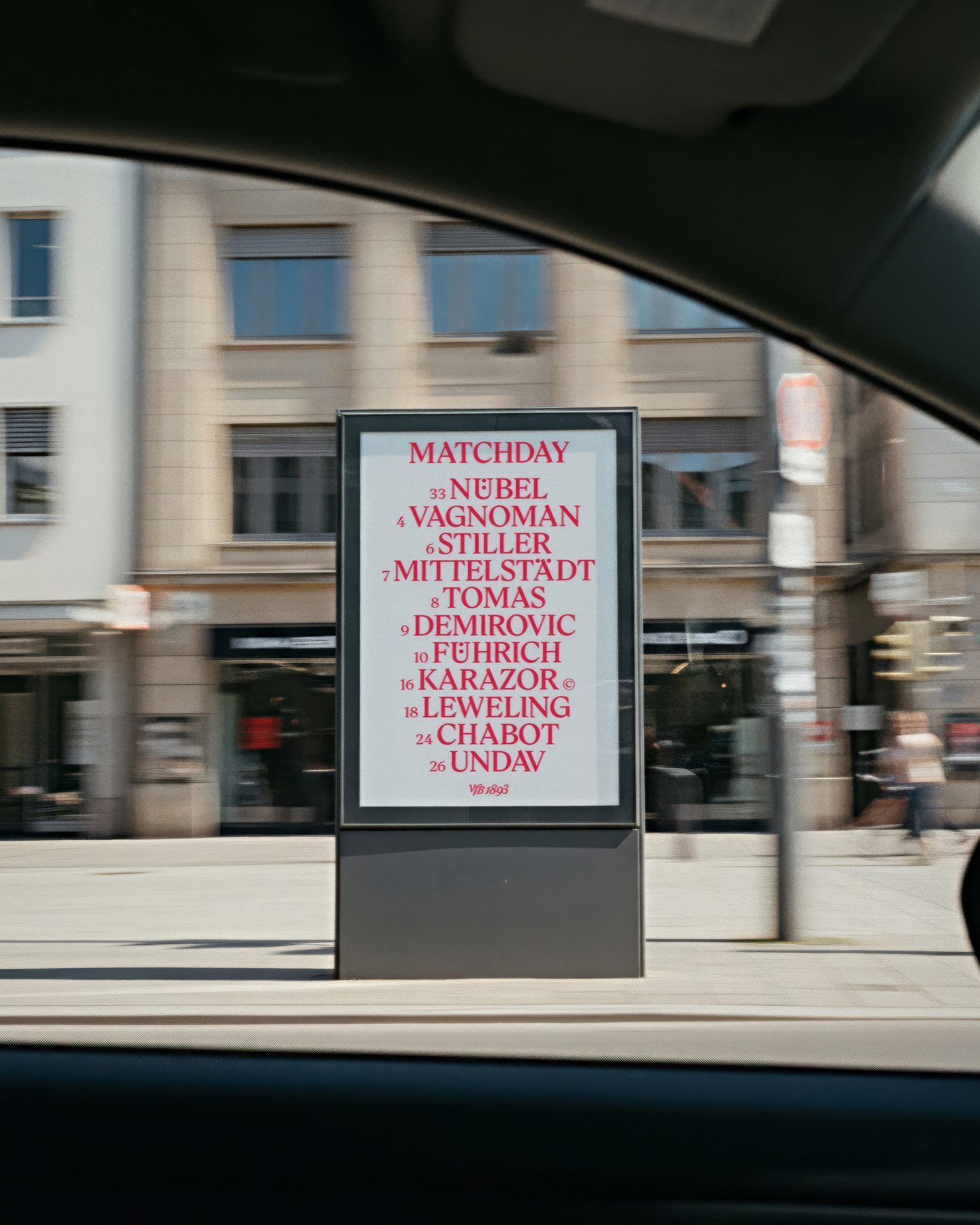 At the heart of the project was the ambition to reconnect the club’s DNA – Verein für Bewegungsspiele – with a contemporary visual system that reflects both tradition and progress. Together with VfB, we worked on the brand strategy, design principles, and a refreshed visual language that gives movement a clear direction, while leaving core elements like the crest, club colors, and red hoop untouched.